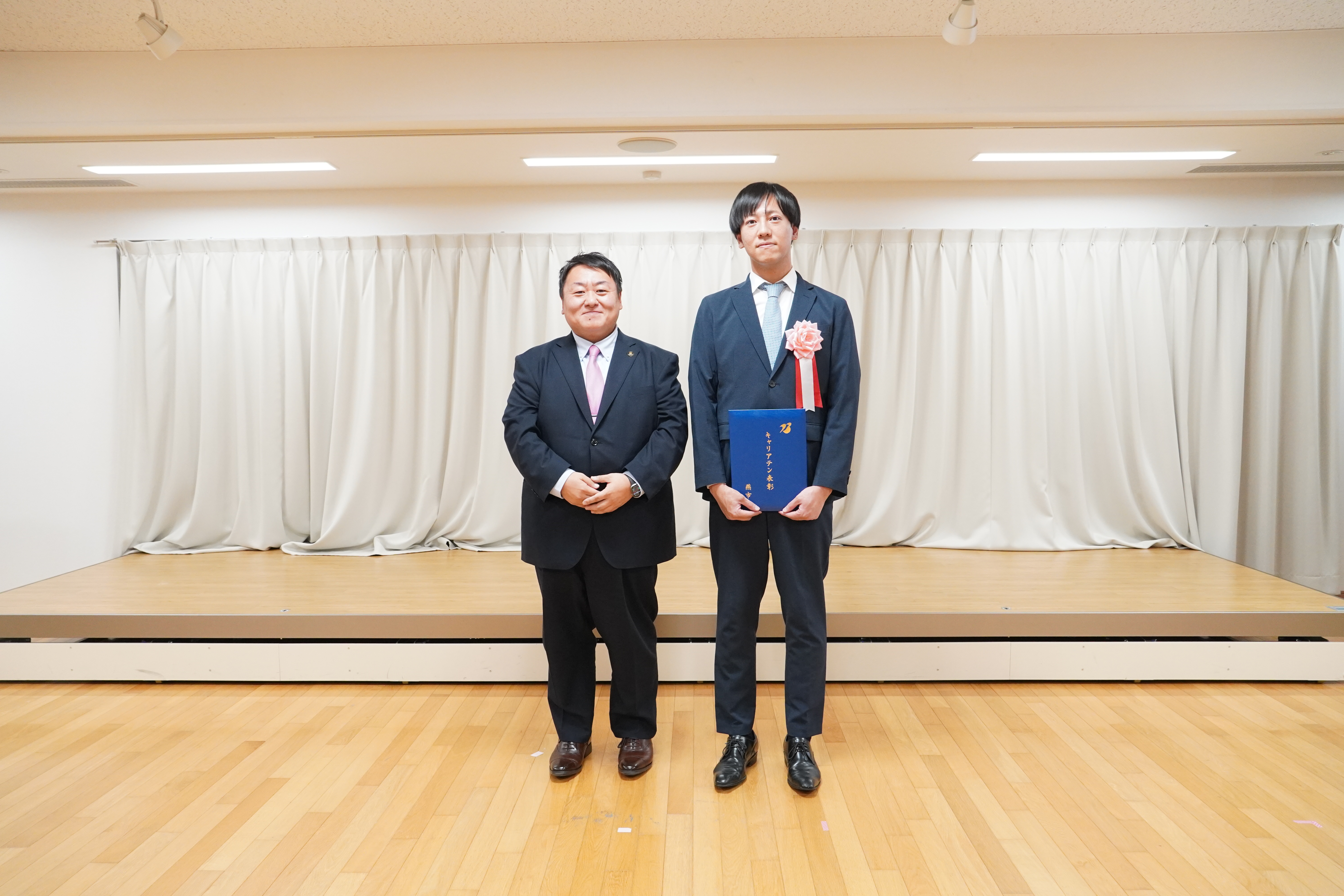 (左)佐野燕市長 と (右)青木高志(エバーグリーン看護介護科)